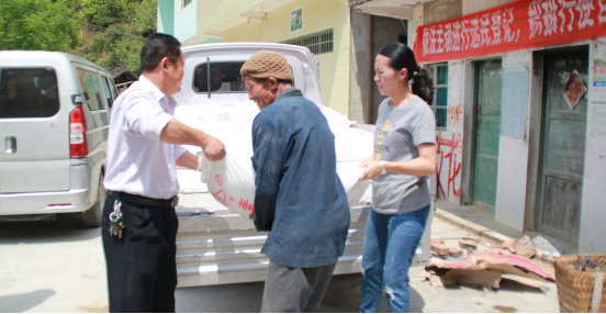 (图为县档案史志局党支部为贫困党员、群众发放帮扶物资)